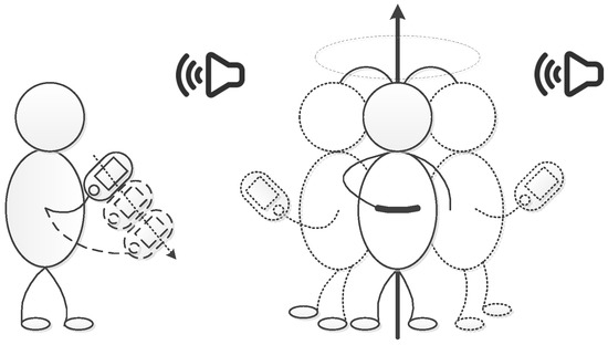 In Figure 1, for azimuthal coverage, we hold the smartphone still and rotate our body around at an approximate constant velocity during the sampling period to imitate a Virtual Uniform Circular Array (VUCA). However, in practice, the uses’ rotation velocity cannot sometimes be maintained approximately constant. Hence, we leverage the gyroscope of our smartphone to correct the sampled virtual nonuniform circular array to virtual uniform circular array under this particular circumstance. Then, we implement the MUSIC algorithm to calculate the direction of the target signals and solve the multipath effect problem.