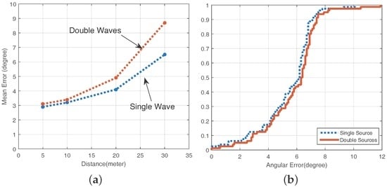 (a) the same acoustic source with single and multiple waves; and (b) the CDF of the angular error in a noisy environment.
