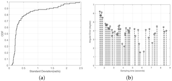 (a) the CDF of the standard deviation of the angular velocity; and (b) the angular errors of different sampling times.