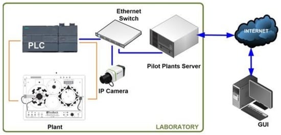 A particular case of the application of communication networks in remote supervision consists of the ability to carry out remote experiences. Remote Laboratories (RLs) fulfill this application and are becoming increasingly relevant in the engineering field. A RL can be defined as an environment whose function is to control a physical system remotely, aiming to teleoperate a real system, to perform experiments and to access sensors data over the network []. Both from an educational and industrial standpoint, the concept is the same: remotely operate plants. This involves pilot plants in the case of educational applications and full-scale plants for industrial environments.