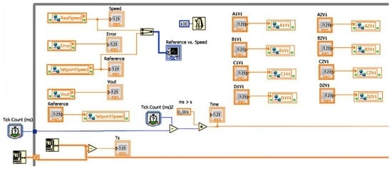 As it is noted, the LabVIEW package is a versatile tool extensively applied for data acquisition and monitoring purposes in diverse technological and scientific fields [,,,,,,,,,]. Furthermore, LabVIEW is very often used in RLs devoted to control and automation. Some interesting examples are now mentioned. Stefanovic et al. [] developed a RL entirely based on LabVIEW and a DAQ, whereas the plant under control is a set of four water-coupled tanks. Kuchirka et al. [] reported an online laboratory to carry out control using a DCSM directly connected to a PC and a LabVIEW-based environment. In [], a RL to carry out online experiments in the domain of mechanical material characterization is implemented using LabVIEW both for data acquisition and as a web server.