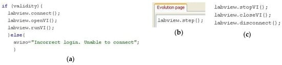 Many of the RLs devoted to engineering and control have been developed using the software Easy Java Simulations (EJS), created by Francisco Esquembre []. It is a freeware, open-source tool written in Java to easily develop interactive virtual and remote laboratories delivered for users with no deep knowledge of the language []. Since its creation, it has been intensively used for virtual and remote laboratory design. It has been widely applied in university education and is continuously being enriched with new options and features. In the engineering field, two important releases of EJS enable a connection with external applications commonly used in laboratories, namely Java-Internet-LabVIEW (JIL) [] and Java-Internet-Matlab (JIM) [].