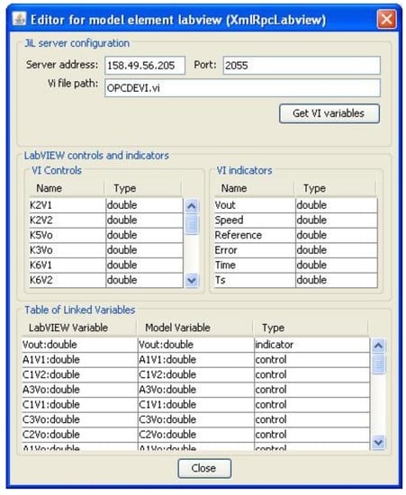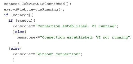 As commented in the Introduction, to establish the data communication between EJS and LabVIEW VIs, a module called the Java-Internet-LabVIEW (JIL) server and the EJS LabVIEW connector element are used. As asserted by Chacón et al. [], both tools provide an easy and effective means to build a RL with a three-layer architecture comprising a LabVIEW-based controller on the server side and an EJS -based GUI on the client side.