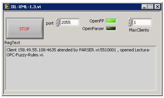 The sampling time has been configured to 0.1 s. This value is proper for the expected use of the RL; however, it can be easily changed in the VI code for other applications if required. Figure 9 shows the OPCDEVI running in the PPS.