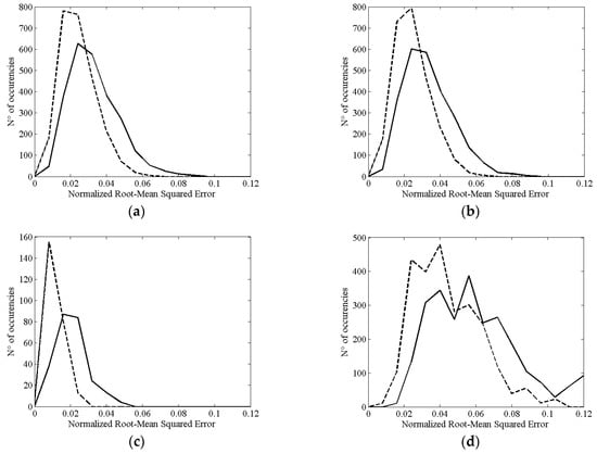 - Final evaluation of the effects of MDS on CCF estimation. The CCF time courses, the maximum correlation coefficients (close to 0.3, 0.4, and 0.5, as described in the previous paragraph), and the corresponding time lags (corresponding to t = 0 s), which were obtained from MDS-free GFP time series, represent the “true” values, referred to in the following as target values. The CCF and corresponding statistics obtained by applying the MDS to the simulated GFPs will be referred to as actual values. A total of 300 different CCFs for each combination of MDS class and GFP family were obtained. Different quality parameters were evaluated. First, the differences between the amplitudes of the target and actual maximum correlation coefficients as well as the differences in the corresponding time lags were estimated. Then, the differences between actual and target CCF time series were quantified by estimating the Normalized Root-Mean-Square Error (NRMSE) that can be seen as a measure of accuracy (see Appendix B). Finally, the standard deviations of the CCFs at each time lag were calculated, thus obtaining a measure of the precision as a function of the VS percentage and GFP family.