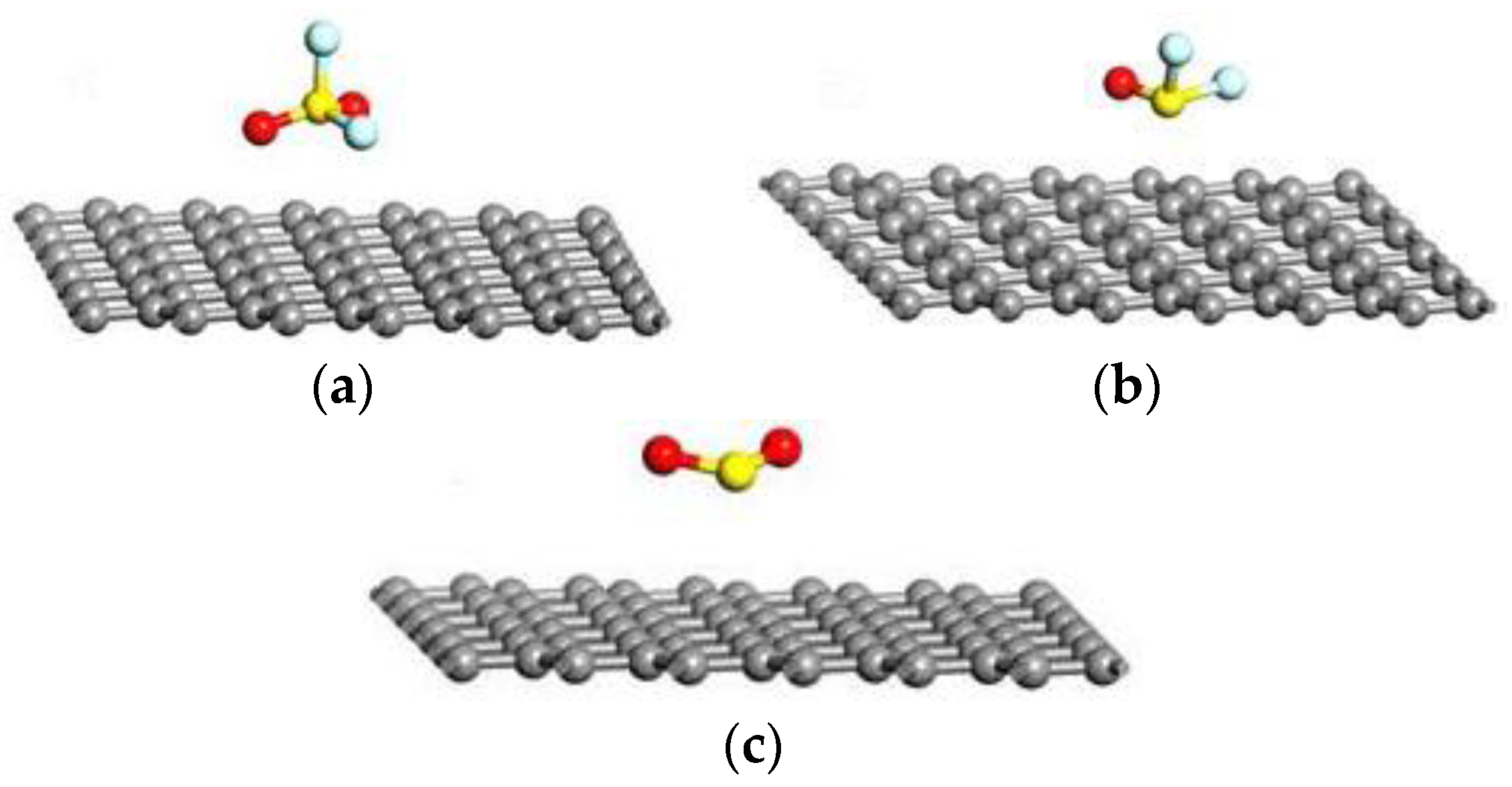 - Shao, L.; Chen, G.; Ye, H.; Wu, Y.; Qiao, Z.; Zhu, Y.; Niu, H. Sulfur dioxide adsorbed on graphene and heteroatom-doped graphene: A first-principles study. Phys. Condens. Matter 2013, 86, 1–5. [Google Scholar] [CrossRef]