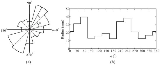 Multiple-circular-sector structure: (a) Shape of the multiple-circular-sector; (b) Radii at different angles.