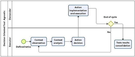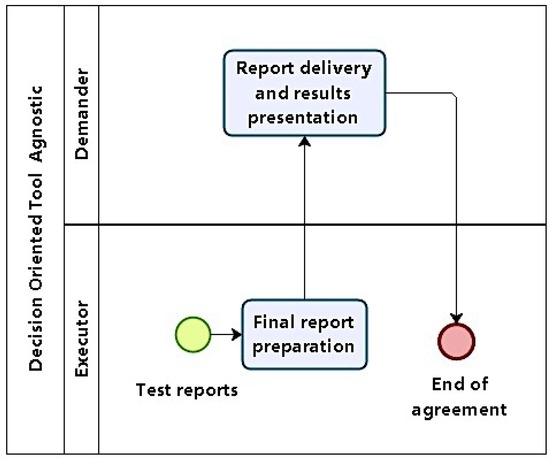 DOTA Methodology consists of six phases, which are executed in a sequence, each phase grouping processes and activities. For the purposes of modeling, two entities were considered: a demander and an executor. The model was produced using Business Process Modeling Notation (BPMN) [47], supported by BizAgi Process Modeler [48], criteriously observing the execution of each phase, which are described in the following.