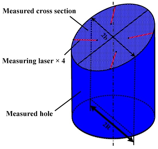 where R is the value of measured diameter. By inserting the coordinates of the measured points into Equation (7), we can obtain the relationship between the measured points and measured diameter: