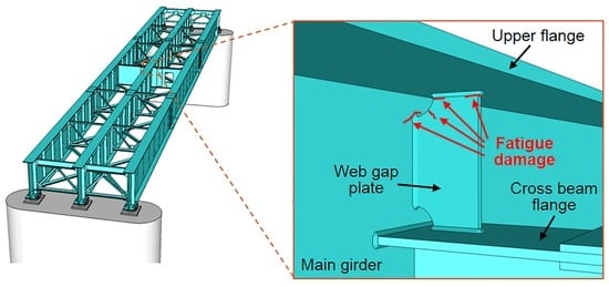 - Fisher, J.W. Fatigue and Fracture in Steel Bridges, 1st ed.; John Wiley & Sons, Inc.: Hoboken, NJ, USA, 1984. [Google Scholar]