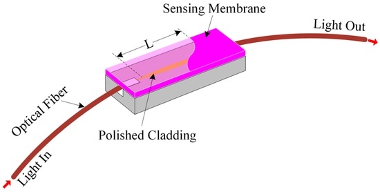 Optical-fiber sensors have become popular because of their acceptable cost, light weight, high accuracy, small dimensions, geometrical versatility, capability of monitoring remote sensing, nonexplosivity, immunity to electromagnetic interference, freedom from strong magnetic fields, and completely electrical isolation. Therefore, optical-fiber sensors are very safe, can detect multiple parameters using a single optical fiber without crosstalk, and can measure at inaccessible sites in harsh environments as well as from long distances. Many optical-fiber pH sensors have been developed based on different optical-fiber architectures, including the following: without/removed cladding [27], optical-fiber U-shaped pH sensor [28,29,30], side-polished optical-fiber pH sensor [31], D-type optical-fiber pH sensor [32], optical-fiber Bragg-grating pH sensor [33,34], and optical-fiber Fabry–Perot pH sensor [35].