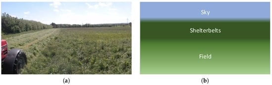 In agriculture, the homogeneous characteristics of an agricultural production field and the fact that obstacles occur rarely and are of distinct appearance compared to the field should be exploited to detect non-predefined obstacles [,,]. In [], both distinct appearance (spacial analysis) and motion (temporal analysis) are used for detecting foreground elements.