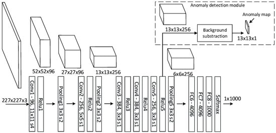 Caffe reference model [] and the anomaly detection module. The notations of, e.g., “Conv1—96, 11 × 11 s4” mean that convolutional layer Conv1 has 96 kernels with a receptive field of 11 × 11 and a stride of four.