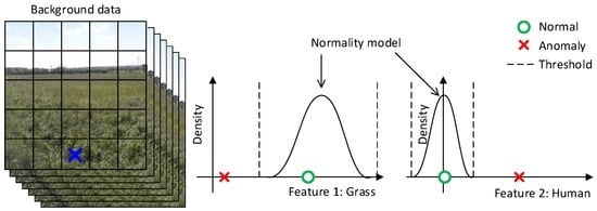 Anomaly detection refers to the problem of finding patterns in data that do not conform to normal or expected behavior []. Using anomaly detection for obstacle detection will, instead of learning/classifying all object types or behavior, model the normal patterns and detects outliers. In an agricultural context, these outliers represent elements that are unnatural to the surrounding environment.