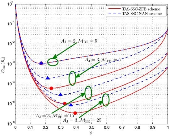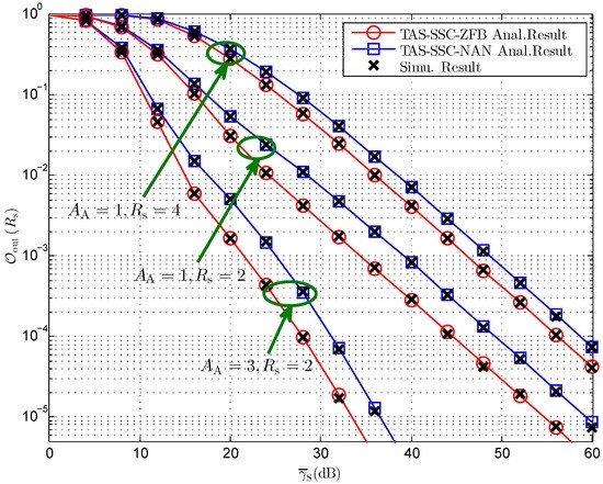where with and represent the TAS-SSC-ZFB scheme and the TAS-SSC-NAN scheme, respectively.