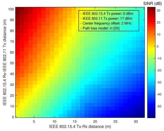 Recent advances in wireless communications and electronic device technology make it possible to realize low-power and low-cost wireless sensor networks (WSNs). The low cost of deployment of low-power WSNs can make various IoT services quite feasible [1]. However, low-power WSNs operating in unlicensed spectrum bands may seriously suffer from unavoidable co-channel interference generated by other radio systems (e.g., IEEE 802.11b/g/n wireless local area networks (WLANs)) [2,3,4,5]. It is of great concern to deploy low-power WSNs that can provide stable transmission performance in the presence of co-channel interference.