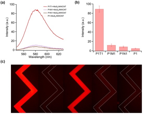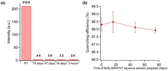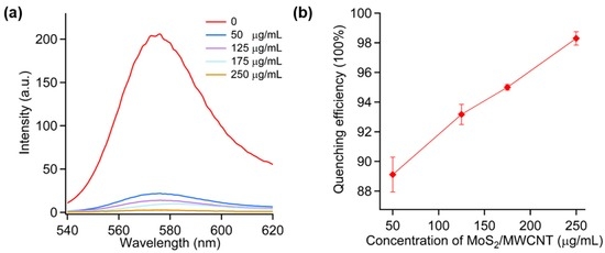3.2. Fluorescence Quenching Ability of MoS2/MWCNT Nanocomposites