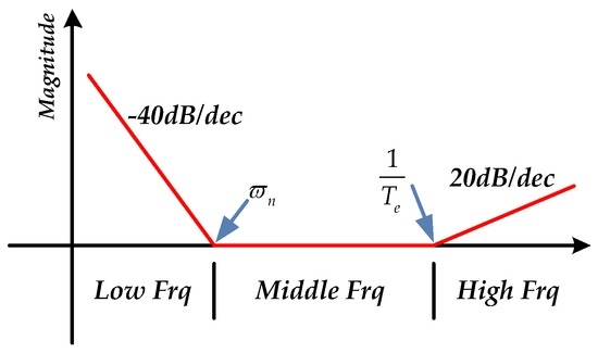 The open loop natural frequency of FSM is approximately between several Hz to tens of Hz, and the damping factor is much smaller than 1 [1,21]. Due to the high sampling frequency in FSM system, the electrical lag factor is also much smaller than 1. Thus, it is easy to depict the diagrammatic sketch of the ideal DOC controller in frequency domain as shown in Figure 4.