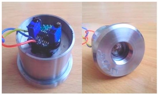 A protective barrel was designed and manufactured to protect the sensor, so as to avoid the effects of water pressure and corrosion. The protective barrel was designed with a 320 mm height and 58 mm diameter, and can work at a water depth of 200 m. The final weight, as shown in Figure 7, is 2.6 kg, including the batteries.