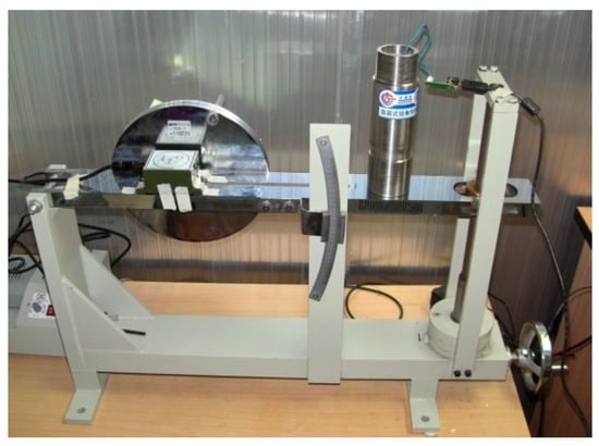 During the calibration of the D-I sensor, it is mainly the contents related to the angle of tilt that need to be measured, due to the fact that the pressure module of the sensor is ordered by the manufacturer. In general, three aspects, namely level zero drift, static measurement and dynamic measurement performances, must be considered in the period of using the inclinator. Therefore, the measurement of the self-contained tilt angle sensor is carried out specific to these three aspects. A Traction Control System (TCS) type tilt meter with a resolution of up to 9″ is adopted in the experiment system (as shown in Figure 9).