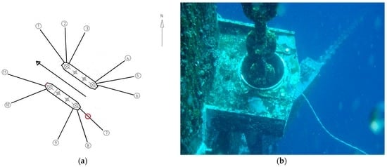 At present, there are three main types of monitoring methodologies used in multi-point mooring systems: (1) Load cells [], which are installed at the chain stopper on the deck to measure the mooring line tension; (2) Fiber Bragg Gauges (FBG) [], or strain gauges, which are pasted on the mooring line for short-term measurement; and (3) In-site underwater mooring systems [], which have specially designed measurement instruments.