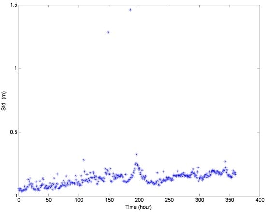 Standard deviation distributions of prototype monitoring water depth data per hour.