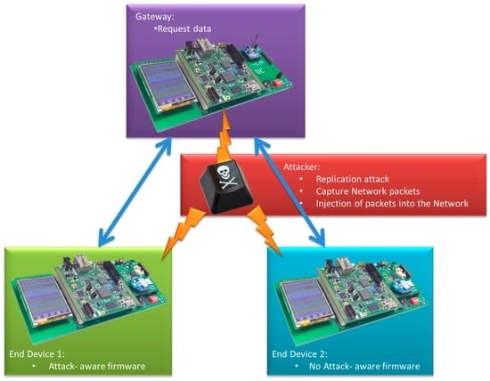 - Reindl, P.; Nygard, K.; Du, X. Defending malicious collision attacks in wireless sensor networks. In Proceedings of the IEEE/IFIP Conference on Embedded and Ubiquitous Computing (EUC), Hong Kong, China, 11–13 December 2010.