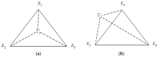 - According to the scope of the regional positioning, the boundary equation is acquired, as well as the computing distance from the center of the polygon region to the boundary. As in Figure 11, the boundary of location area are and , respectively, and we can calculate the distance from to and in ascending rank order.