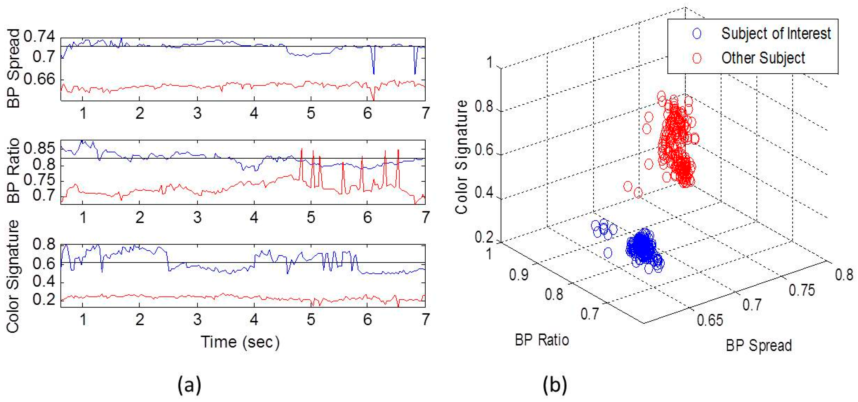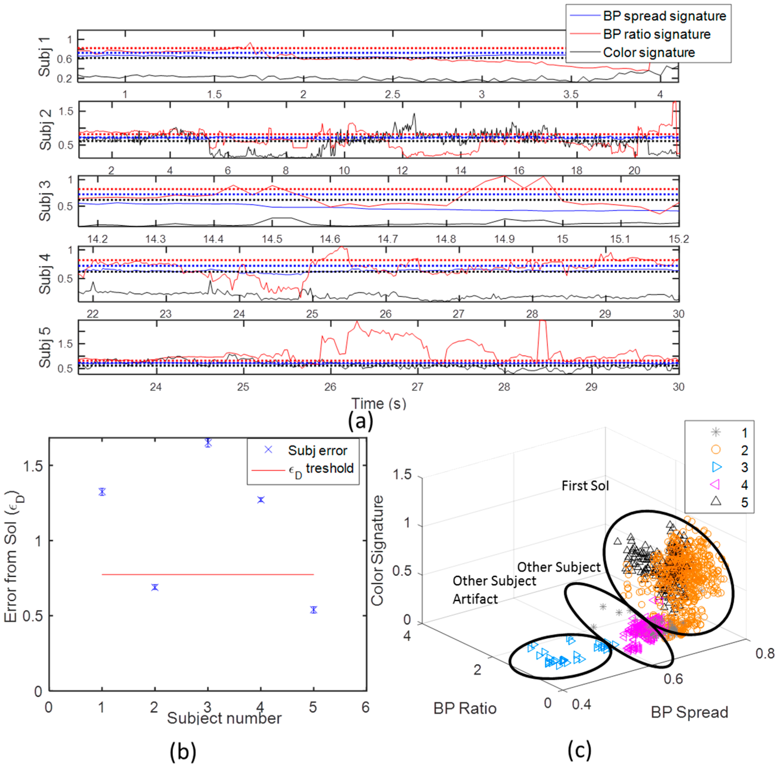 The detection threshold can be tuned to minimize the error of subjects of interest in the data base, sometimes referred to as subjects in a white list. In case that artifact was not filtered out, or the subject does not exist in the data set, the estimated index, , would be null.