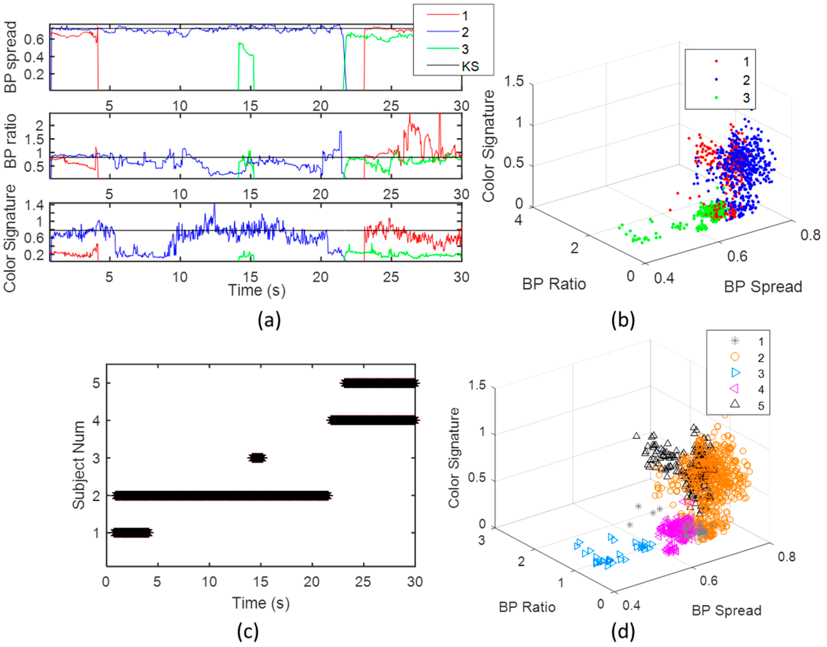 At calibration phase the two subjects stood for 7 s. Their KS was derived and stored for identifying the SoI at the tracking phase.