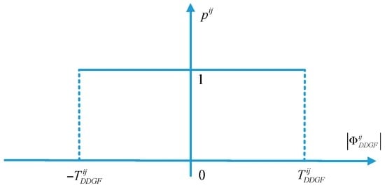 From Figure 2, it is clear that the weighting is one when the DDGF residual error satisfies the theoretical threshold of the estimated carrier phase error, namely, . The weighting value is down to zero when the DDGF residual error is larger than the theoretical threshold.
