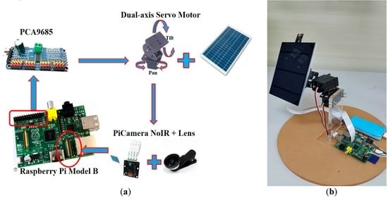 - Rahim, R.A.; Zainudin, M.N.S.; Ismail, M.M.; Othman, M.A. Image-based solar tracker using raspberry. J. Multidiscip. Eng. Sci. Technol. 2014, 1, 369–373. [Google Scholar]