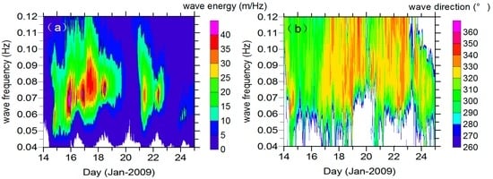 (a) Wave energy and (b) wave direction contour of buoy 51001.