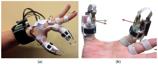 - Hammond, F.L.; Menguc, Y.; Wood, R.J. Toward a modular soft sensor-embedded glove for human hand motion and tactile pressure measurement. In Proceedings of the 2014 IEEE/RSJ International Conference on Intelligent Robots and Systems (IROS 2014), Chicago, IL, USA, 14–18 September 2014; pp. 4000–4007.