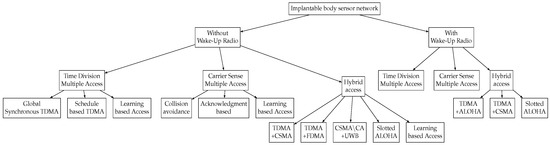 The rest of the paper is organized as follows. We first explain the characteristics of IBSN in Section 2, with respect to the general strategies of IBSN and elucidate its difference from conventional BSN. In Section 3, we present the traditional medium access mechanisms and their working principle concerning the IBSN. In Section 4, we categorize the existing MAC mechanisms based on their use of WuR and present a taxonomy followed by a comparison between the access mechanism in the classified order. An evaluation of MAC protocols based on the requirements of IBSN is presented in Section 5. Eventually, we present the open research challenges in designing MAC protocols for IBSN in Section 6, followed by a concluding remark from our study which is included in Section 7.