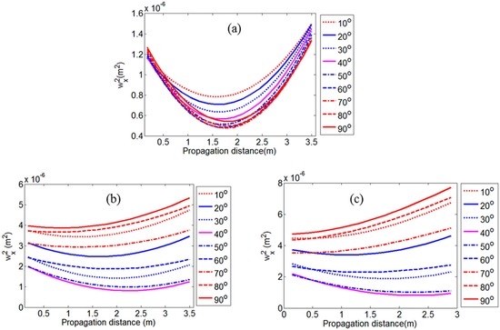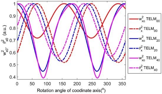 Therefore, the beam widths and the beam divergence half angles of the original and rotated beam (with a rotation angle α) have the following relationships which are given by the Equations (28)–(31), respectively; as following [30,32],
