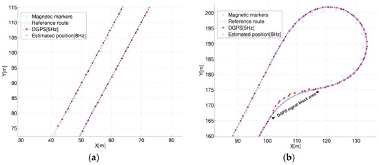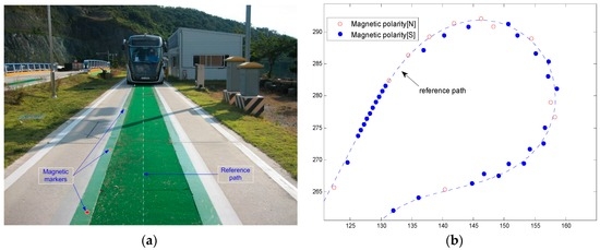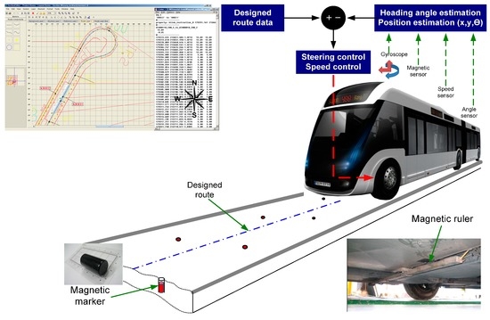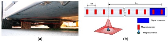 - Byun, Y.S.; Jeong, R.G.; Kang, S.W. Vehicle Position Estimation Based on Magnetic Markers: Enhanced Accuracy by Compensation of Time Delays. Sensors 2015, 15, 28807–28825. [Google Scholar] [CrossRef] [PubMed]