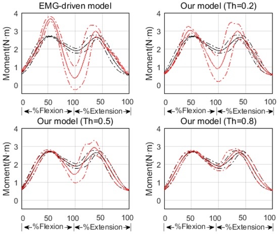According to the previous study [24], comparison results with and are thought to be acceptable for joint moment estimation. In our approach, we narrowed them down to and to make the NMS model more elaborate. We first set = 0.1, then increased it with a 0.1 step size until the joint estimation result achieved the proposed criterion. Validation of this adjustment method is discussed in the Results section.
