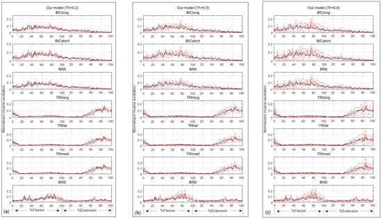 - Koo, T.K.K.; Mak, A.F.T. Feasibility of using EMG driven neuromusculoskeletal model for prediction of dynamic movement of the elbow. J. Electromyogr. Kinesiol. 2005, 15, 12–26. [Google Scholar] [CrossRef] [PubMed]