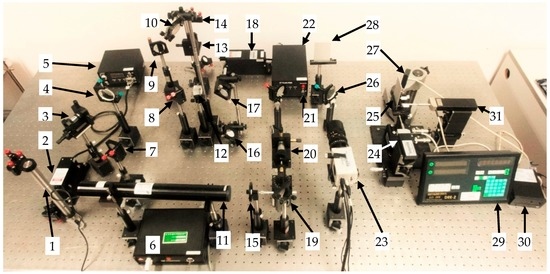- Yano, Y.; Watanabe, Y.; Ishii, T.; Goka, S.; Sato, T.; Sekimoto, H. Real-Time Three-Dimensional Vibration Mode Visualization System Based on Laser Speckle Interference. In Proceedings of the 2010 IEEE International Frequency Control Symposium, Newport Beach, CA, USA, 1–4 June 2010.