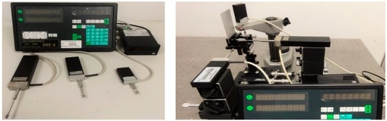 The object is fixed to a THORLABS three-axis flexure stage, with a minimum increment of 20 nm. After careful adjustment, the object surface remains parallel with the x-direction so that when the object moves in one direction of the stage manually, the optical path difference in the other two directions will not change. The actual displacement values are measured by the three grating rulers. The accuracy of the grating ruler is 0.1 µm. These grating rulers are shown in Figure 9.