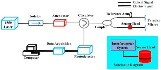 3.1. Experimental Setup of Michelson Interferometer-Based Fiber Sensing System