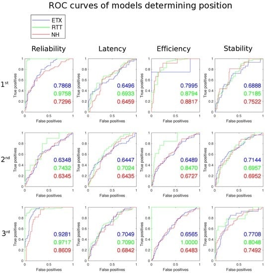 The preferences are used as a multiplicative weighting factor on the criteria scores. After weighting the criteria each of the criteria scores are summed to create the solution score. Table 6 shows the solution scores which advise best solution for the preference set A. This preference set holds all criteria at equal importance. The ETX-NH solution is a marginal winner with this preference model due to a strong performance for reliability and stability. ETX is the chosen solution for preference set B. Increased importance is placed on both reliability and latency with little importance placed on stability and efficiency. Despite the increased importance focusing on latency in preference set C, ETX is chosen as the best solution. This is due to the poor performance shown by the ETT solution in both stability and efficiency.