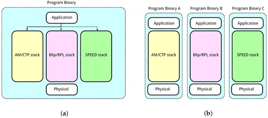 - Levis, P.; Madden, S.; Polastre, J.; Szewczyk, R.; Woo, A.; Gay, D.; Hill, J.; Welsh, M.; Brewer, E.; Culler, D. TinyOS: An operating system for sensor networks. In Ambient Intelligence; Springer: Berlin/Heidelberg, Germany, 2004. [Google Scholar]
