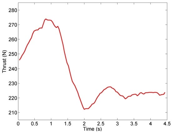 As mentioned before, the engine thrust cannot be measured during flight, but the rotor speed can be measured by Hall sensor with very high accuracy. The measured rotor speed will serve as the input in the engine thrust model (Equation (5)) to compute the thrust.