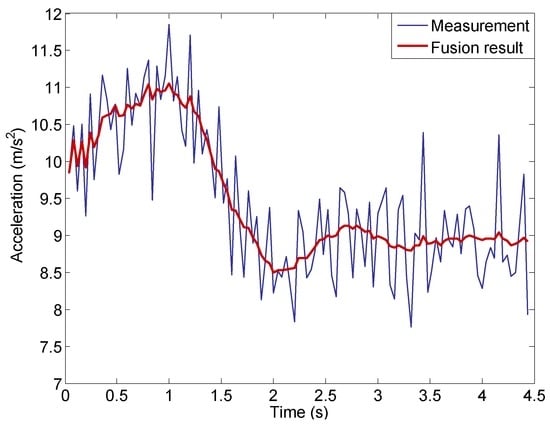 where is the acceleration fusion result, is the weighting coefficient with . It is obvious that is asymptotically unbiased due to the asymptotically unbiasedness of and the unbiasedness of . The variance of is given by: