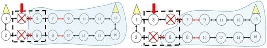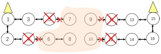 In addition to the characteristics of two-way communication and hybrid network topology mentioned above, the ORSN system also need to satisfy other characteristics, such as high reliability and low cost, etc. The system should meet the requirement of the N − x principle, which means that for a system with N nodes, when x nodes are faulty, the system will not be affected. The N − x principle is widely applied when planning and design high reliable communication systems [21,22,23]. In this paper, we introduce this principle to the on-road sensor communication system in order to improve the reliability.