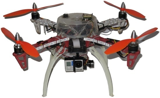 To perform the experiments and evaluate the proposed methodology, we designed and constructed a UAV. The objective was to build a low-cost vehicle, easy to assemble and composed of COTS parts. Furthermore, the UAV should be capable of performing autonomous missions, preferably using open source software for better support. We decided to use a multirotor platform because it has Vertical TakeOff and Landing (VTOL) capability, allowing operations in rough terrain, is simpler to operate and maintain, while also being safer than traditional helicopters. As we were targeting a low-cost vehicle, we chose a quadrotor platform, as it uses fewer motors, therefore being the least expensive one. Figure 7 shows the final prototype. The vehicle cost ended up being less than 500 USD, with potential for being even less in present day, as many of the components’ prices have decreased.