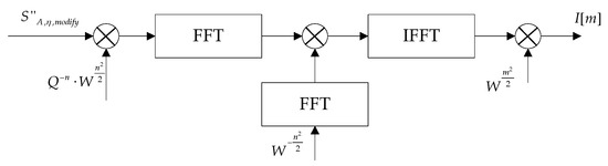 where I is the final focused result, represents the chirp-z transform, is the convolution operation which can be implemented by FFT and complex multiplications as shown in Figure 8.