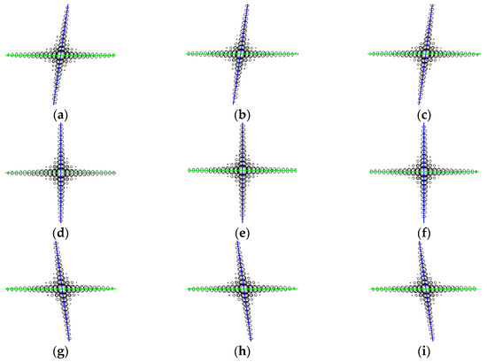 The interpolated contour plot of the nine point targets, with (a–i) corresponding to point targets from to .